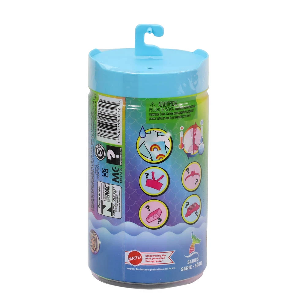 - Aan de binnenkant van de verpakking vind je een Color Reveal Chealsea zeemeerminpop.