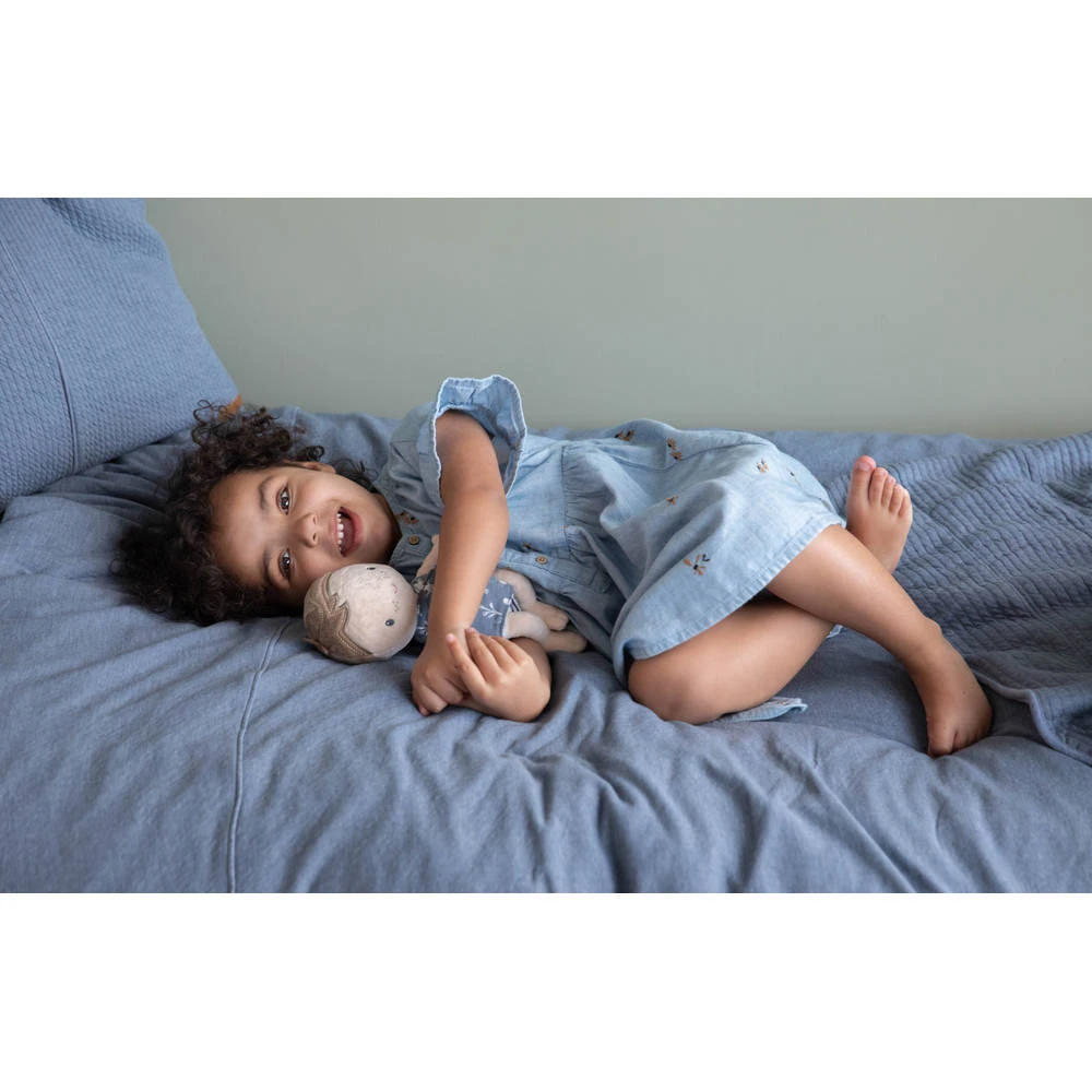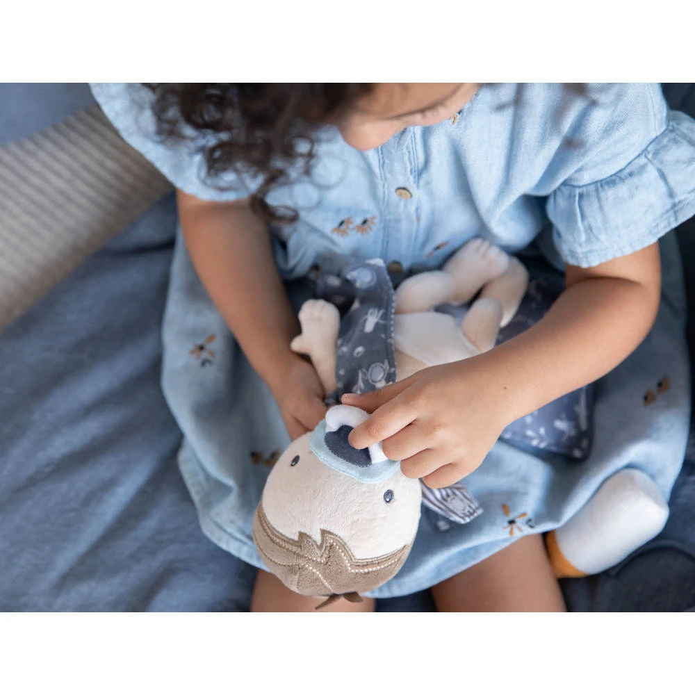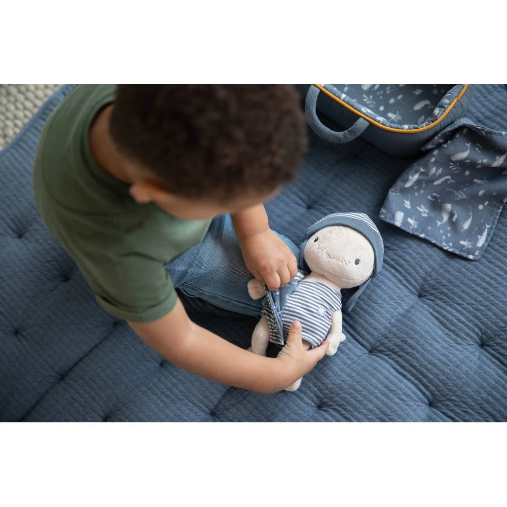 Babypop Jim van Little Dutch wil graag geknuffeld en verzorgd worden. Deze zachte pop is gemaakt van pluche.