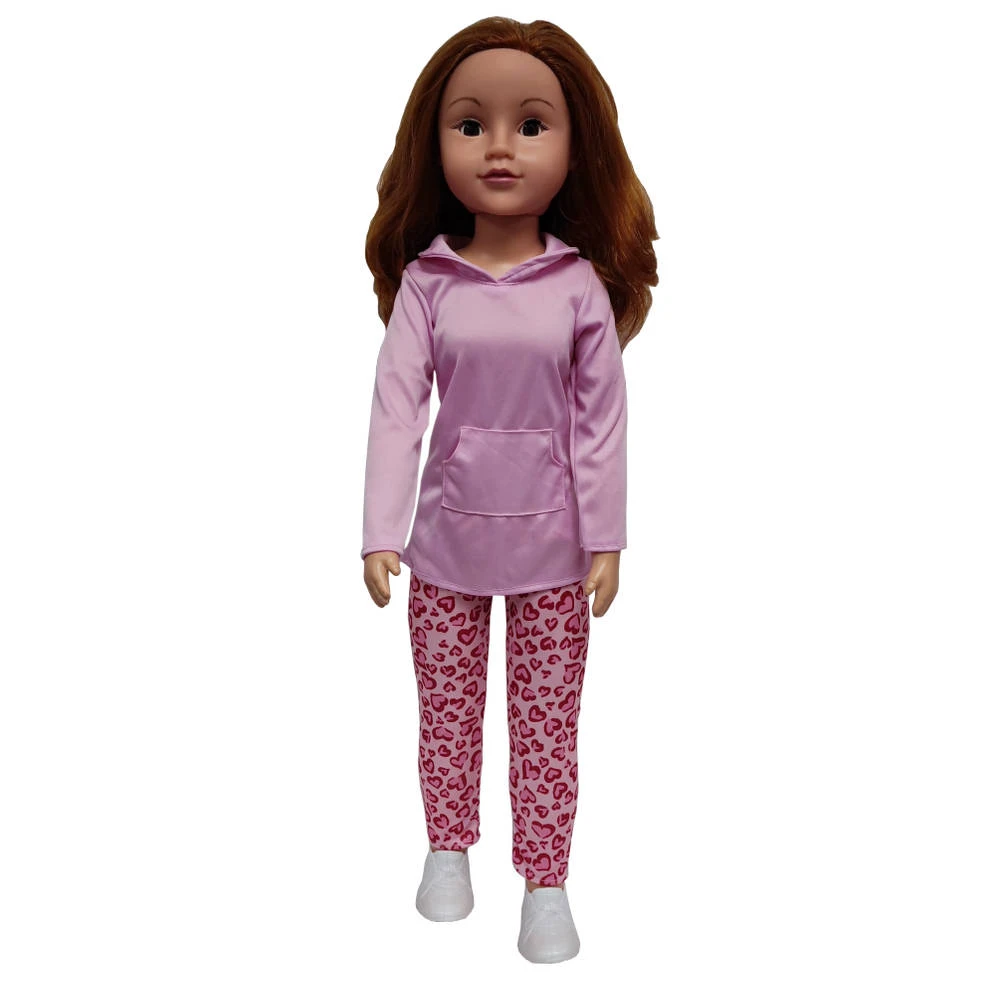 Maak kennis met deze lieve pop die echt kan bewegen en lopen. De pop is maar liefst 80 cm groot en heeft mooi, bruin haar. Ze is gekleed in een stoere outfit.