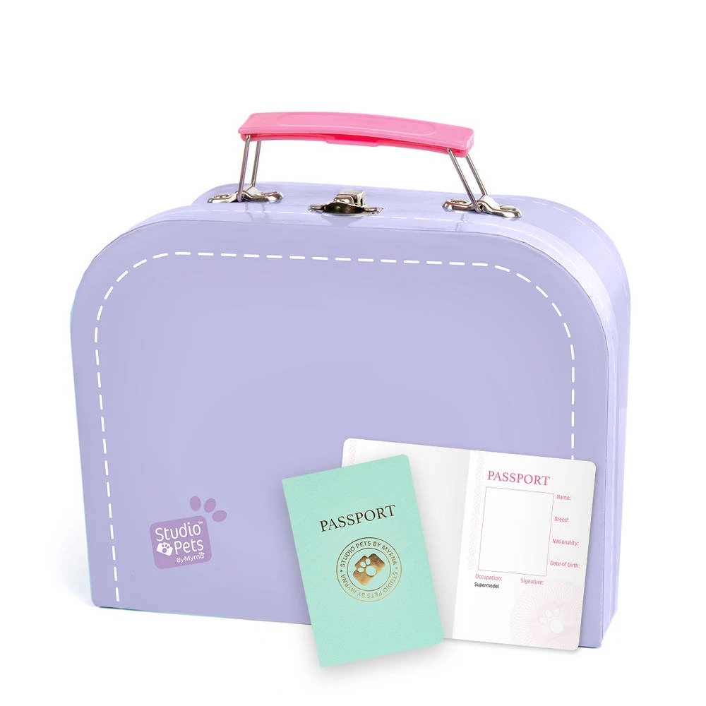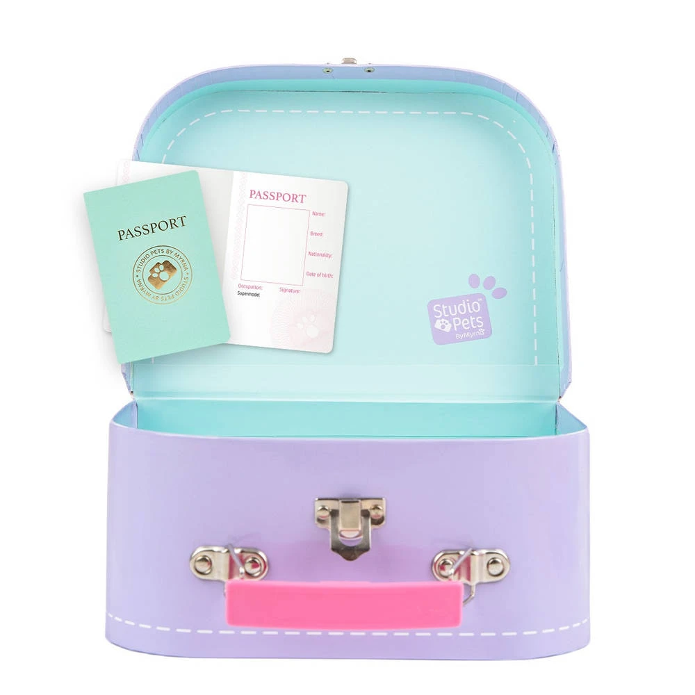 Deze prachtige lila koffer is uitermate geschikt voor een Studio Pets knuffel van 16 cm. Op die manier kan je je favoriete knuffel gemakkelijk overal mee naar toe nemen. De koffer wordt geleverd met een blanco paspoort speciaal voor jouw knuffel. Het koffertje is gemaakt van hoge kwaliteit karton.
