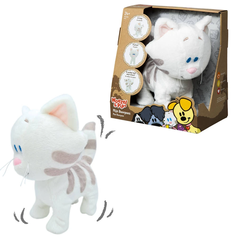 Met deze Buurpoes van Woezel & Pip heb je je eigen interactieve poes met geluid, wat zorgt voor een unieke speelervaring! Nu kun je écht spelen met je favoriete vriendje uit de Tovertuin! Aai haar over haar hoofdje of lijfje en ze begint te praten. Ze kan zelfs lopen en met haar staartje zwaaien. Speel, loop, lach en zing je met Buurpoes mee?